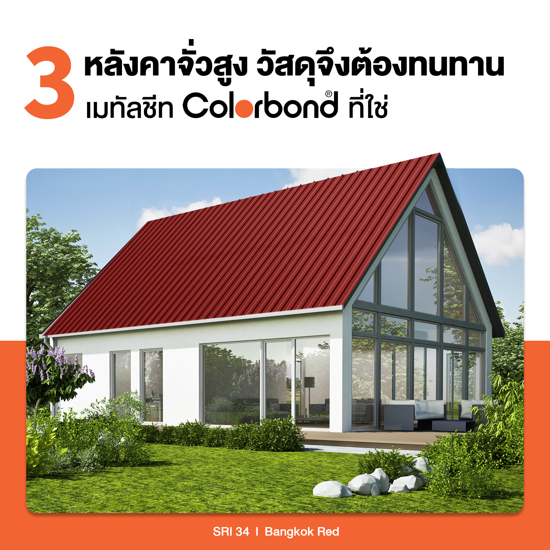 COLORBOND® steel roofing & walling เมทัลชีทพรีเมี่ยมที่ถูกเลือกใช้ให้เป็นวัสดุสำหรับหลังคาและผนังสำหรับอาคารชั้นนำ และยังเป็นวัสดุที่เป็นที่ชื่นชอบในหมู่สถาปนิกชั้นแนวหน้า ในการเลือกใช้เป็นวัสดุสำหรับการสร้างอาคารและที่พักอาศัยเพราะ เป็นวัสดุที่แข็งแรง ทนทาน สามารถใช้ได้ กับสภาวะแวดล้อมที่รุนแรง นอกจากนั้นเมทัลชีท Colorbond® ยังถูกนำไปใช้สำหรับการสร้างสรรค์จินตนาการ ในงานที่ต้องการความโค้งมน และสง่างาม